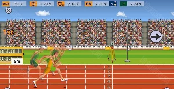 2、根据游戏中的障碍物或者运动时机进行有节奏的按键,并且在物理引擎的条件下控制好方向。游戏中主要操控运动员的两条腿,每条腿都会有一个按钮。