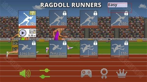 1、首先进入跑步模拟器游戏,选择关卡,这里可以按照简易难度进行选择;