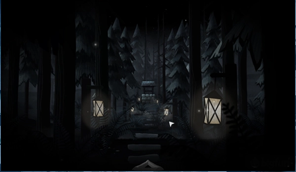 游戏的视觉呈现采用了手绘风格的暗色调处理,仅在局部点缀着微弱的光线。这种看似平和的画面氛围下,却处处弥漫着一种难以言喻的诡异感。