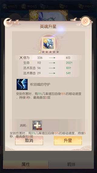 通过消耗特定的碎片道具,可对对应英魂进行星级提升操作。每次星级提升都会带来英魂基础属性的增长,若该英魂具备主位技能,其技能的效果也会同步增强。所有英魂的星级上限均为六星。