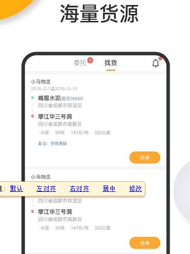 2、司机端功能丰富实用:支持向指定物流商下单、司机抢单,可实时预估发货费用,并具备货物跟踪、回款状态查询及回单状态跟踪等功能