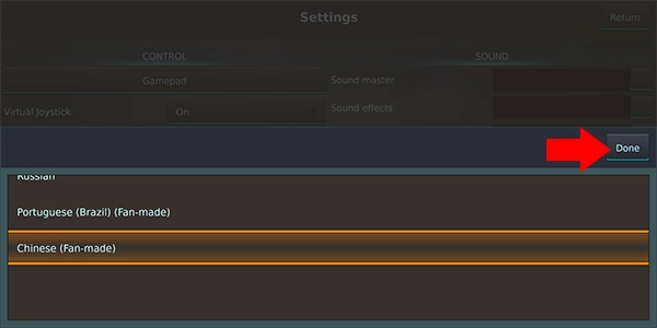 在语言设置界面选择对应选项后,点击右上角的确认按钮保存更改,之后重启游戏就能完成语言切换