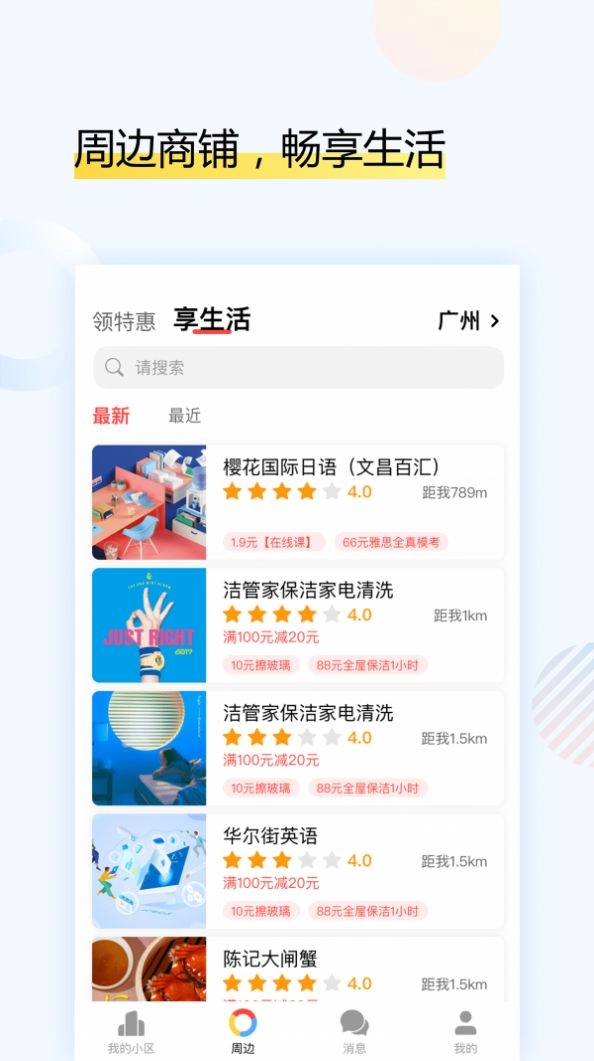3、特惠专区,每日尽享超值福利;蓝牙门禁,一键轻松解锁;周边商铺,满足日常所需,畅享便捷生活。