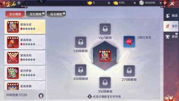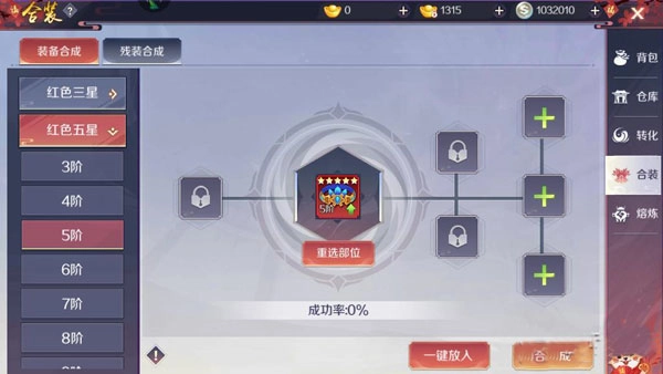 装备进阶是提升装备属性的高效途径,游戏中玩家初期获得的装备多为三星品质。通过合成操作,可将三星装备直接升级至五星,其基础属性与附加属性会全部重置,带来的属性提升十分可观。不过合成五星装备需要消耗大量三星装备作为材料,且随着装备等级提升,合成成功率并非100%,这一点需要玩家特别留意。 镶嵌宝石则能为装备提供额外的属性加成,随着角色等级的提高,装备会解锁更多的宝石镶嵌槽位。每件装备最多可镶嵌六颗宝石,玩家可以根据自身的属性需求,自由选择不同类型的宝石进行搭配。