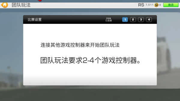当玩家仅连接单个手柄时,系统会弹出提示,告知其需外接更多手柄方可开启多人团队模式。