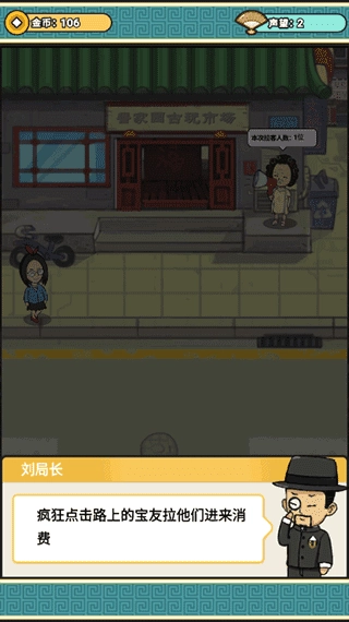 可以在店外通过派发传单来吸引顾客,操作方式是快速点击路过的宝友;每次完成招揽后,需要间隔一段时间才能再次进行。