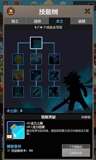 首先,技能树包含骑士、战神、术士、盗贼四种天赋,其中骑士天赋的加点方式主要依赖主动点击操作,要是你平时经常在线通过点击进行游戏,那么这个天赋会非常适合你。