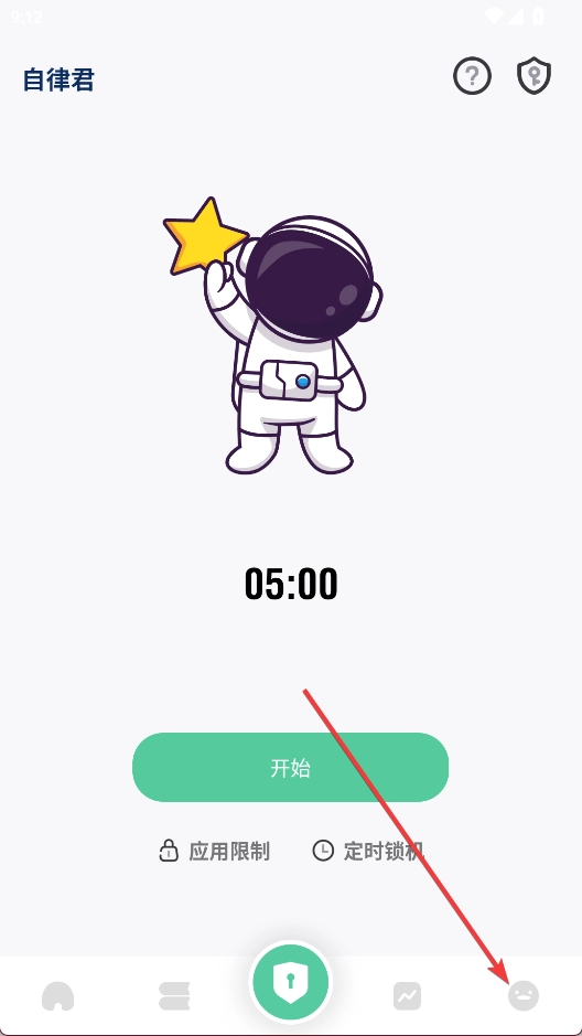 1、打开自律君,点击右下角按钮进入个人中心