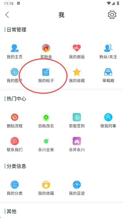 2、进入我的页面后,点击【我的帖子】功能,找到自己想要删除的帖子并点击,即可完成删除操作。