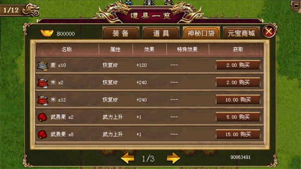 木牛流马:当恢复用豆的数量低于99个时,会自动使用恢复用豆。该道具可在秦川之战战前准备阶段的过场剧情中获得。