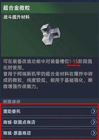 强化需要消耗超合金微粒,这种材料可通过商城的联盟点商店、原晶商店获取,也能从日程玩法中得到。