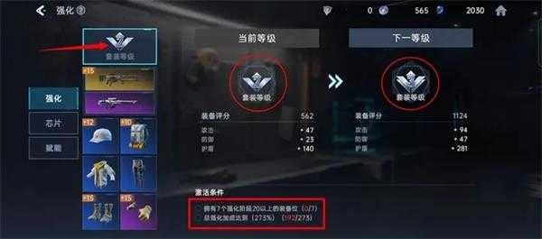 当满足强化套装的激活条件时,即可获得该套装带来的额外属性,包括攻击、防御、护盾等。