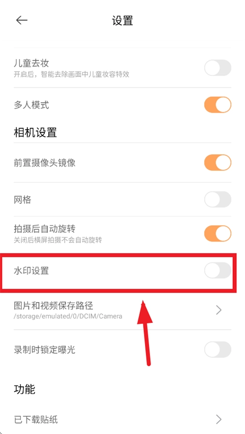 2.进入设置页面找到水印开关选项;