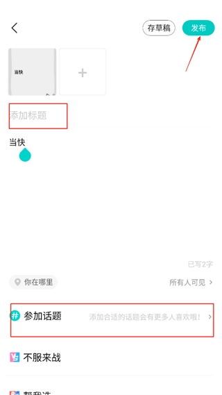 5、添加标题、内容,参与话题点击发布