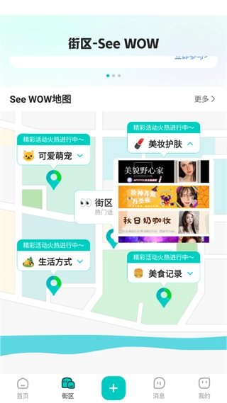 西五街App作为一款兴趣内容社区类软件,凭借多元的街区互动形式、真实的内容交流氛围以及创意共创机制,为年轻群体构建了一个能够自由表达自我、链接兴趣同好的空间。在这里,用户可以灵活切换身份,在穿搭、美食、户外、影视、搞笑等不同兴趣街区中探索,参与内容创作、话题挑战以及战队互动等活动。而平台的街币激励体系,能进一步助力用户账号的成长与变现,让每一份创意都能得到反馈,每一次表达都能实现价值。平台还专注于从“人找内容”到“人找人”的升级思路,鼓励用户借助内容结识志同道合的伙伴,打破单纯点赞的“互动孤岛”,建立起真实的情感共鸣。