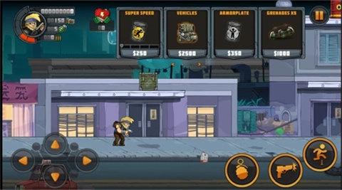 2、进入游戏关卡,通过移动角色,跳跃和攻击,使用不同的枪和手榴弹可以快速的消灭敌人。
