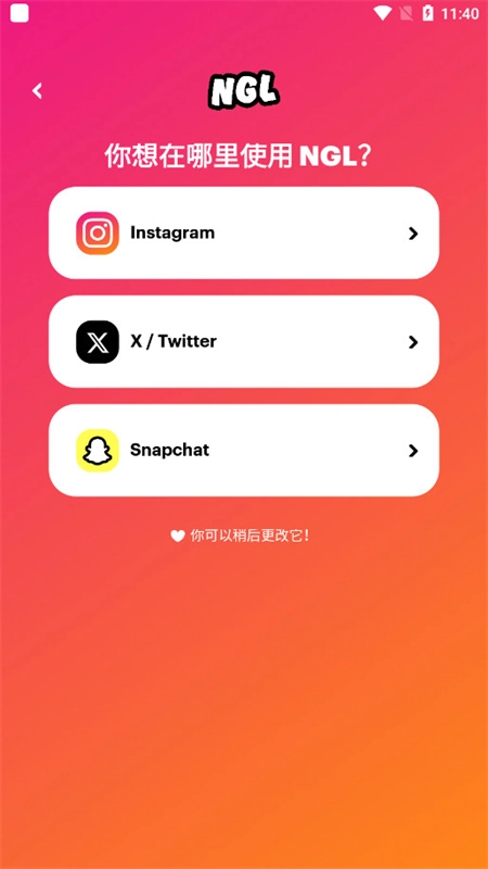 NGL是一款在国外广受欢迎的高隐私性匿名社交聊天应用,用户能借助其匿名提问功能向其他用户发起提问或回应问题。此外,用户还可直接将NGL最新版的链接分享至Instagram等平台,他人点击该链接后即可进行匿名提问或回答。因为个人信息受到严格保密,所以大家能够在NGL上不受限制地畅所欲言,结识更多志同道合的好友!
