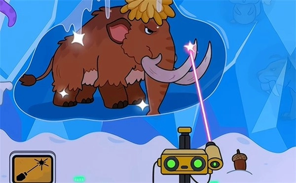 运用激光武器使冰块熔化,冰里藏着猛犸象之类的原始动物。