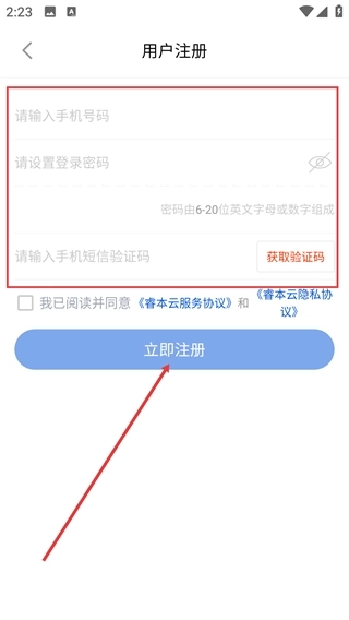 在睿本云登录页面,若您还没有账号,点击“立即注册”按钮就能开启注册流程;要是已经有账号了,就填写用户名和密码,勾选相关协议后点击“登录”按钮即可。