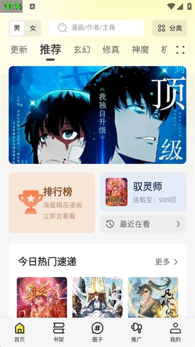 1、打开软件后即可在推荐界面发现非常多热门的漫画