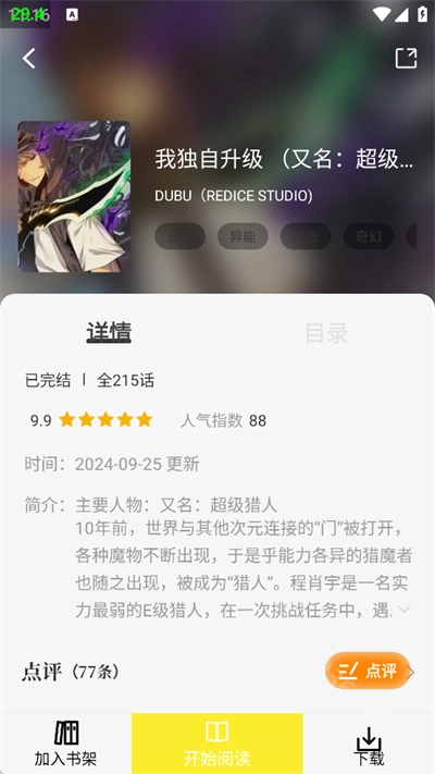 2、点击漫画即可进入详情界面,点击下方的开始阅读