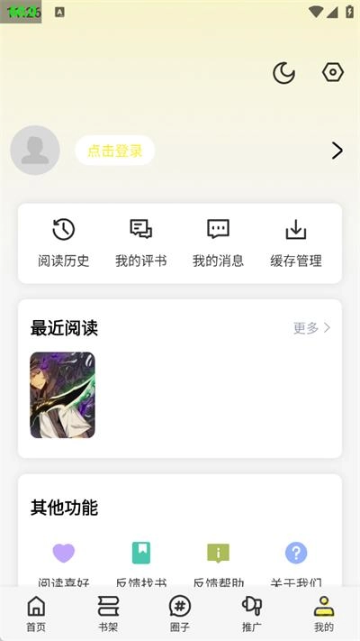 2、进入“我的”界面后,点击右上角的第一个图标,就能切换阅读模式了。
