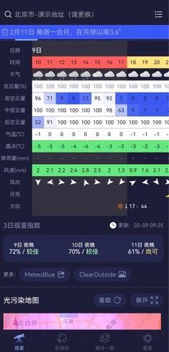 5.协助用户避开光污染与恶劣天气,大幅提升观测成功的概率。