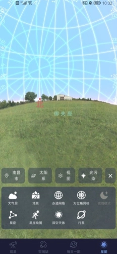 5.最后,在星图里还能选择地区,进而查看大气层、地景、赤道网格、方位角网格等相关信息。