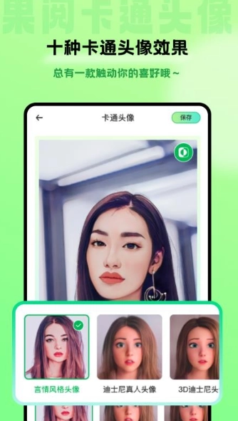 果阅卡通头像是一款十分有趣的摄影图像类软件,它聚焦于人像的拍摄与处理,能让你摇身一变成为妙趣横生的卡通角色。该软件运用AI算法来生成图像,在精准捕捉你面部特征并保留独特神韵的基础上,为你打造出对应的照片效果。其中,卡通头像效果可以让你瞬间化身为迪士尼公主或王子,人像动漫画功能则能让你直接成为日漫里的角色,而且它还支持全身照和多人照的处理,实在是太有意思啦!