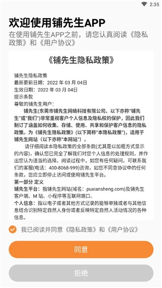 1、并安装铺先生后点击打开并同意协议;