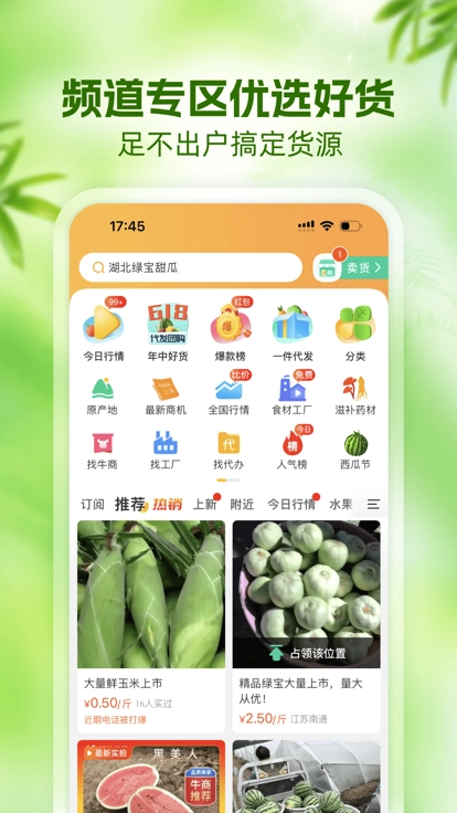 农产品交易:发布供需信息,直接对接买卖双方,涵盖35大类农产品,全国货源任您挑选。