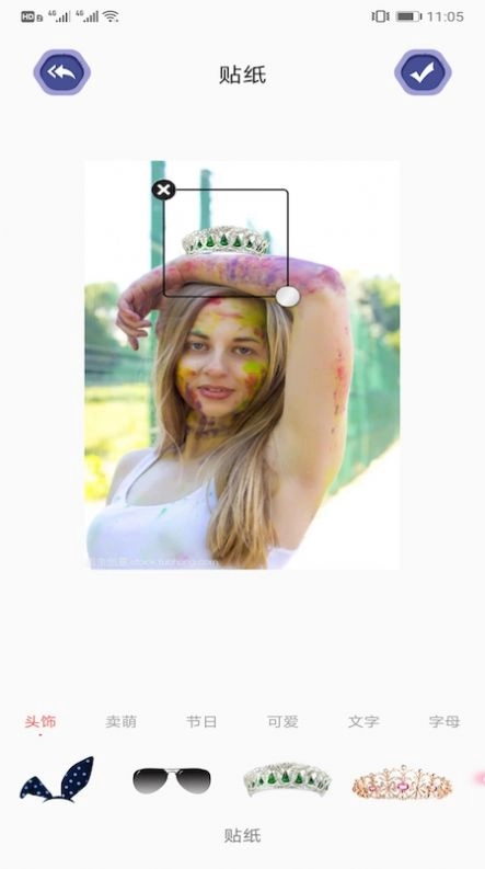 2、我们提供多款免费贴纸,您可以根据喜好在照片上自由添加心仪的贴纸。