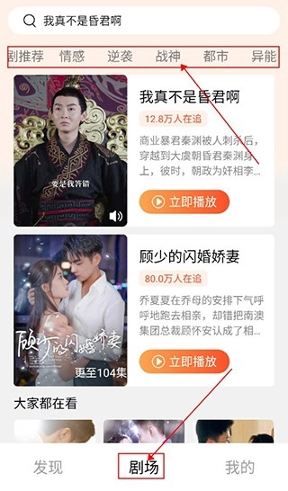 用户可点击页面下方的剧场入口,进入专属剧场界面后,便能从精选、新剧、情感、逆袭等七大类目里,挑选心仪的内容分类来观看。
