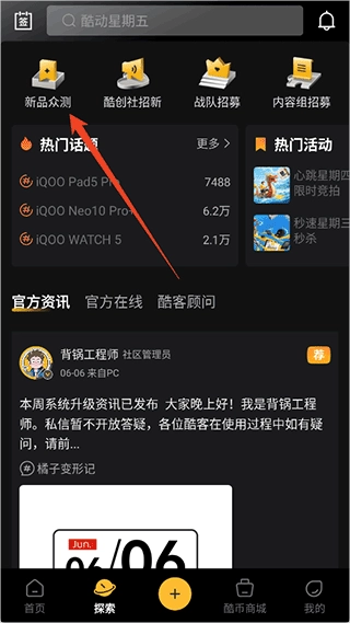 在iQOO的专属社区里,新品亮相、系统迭代、电竞赛事等关键动态会被第一时间传递给用户。大家无需费力查找,就能直接获取相关资源包或完成系统升级,彻底摆脱信息接收不及时的困扰。