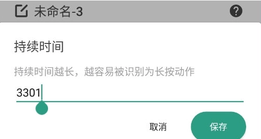 自动点击功能的长按时长可通过调整持续时间参数来设定,该参数数值越大,系统判定为长按操作的可能性就越高。