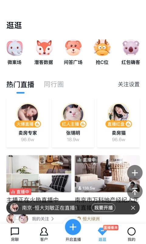 可以选择去逛逛,看看热门直播,听听热门主播的讲解,从而了解最新的楼盘信息。