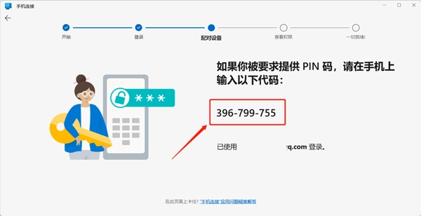 Windows会生成一个二维码,你可以用“连接手机”的配套应用程序在电脑上扫描这个二维码。