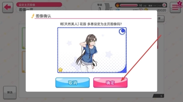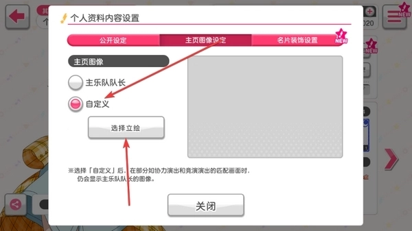 在主页图像设定中勾选【自定义】,点击【选择立绘】