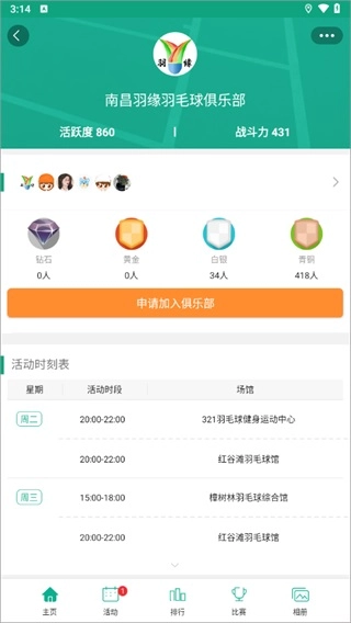 点击俱乐部即可进入详情介绍页面,这里包含详细的活动时刻表。