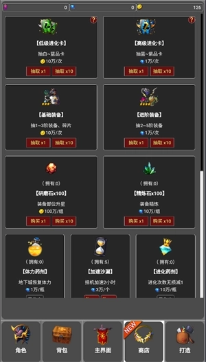 3、进化完成后,建议先把进化因子分配到吸血属性上,接着前往打造→合成界面,将获得的装备进行合成操作,随后穿戴好新合成的装备,继续在进化之路推进关卡。若当前没有进化卡可使用,可选择去抽卡获取,或者前往新解锁的地下迷宫挑战,以获取装备和卡片等资源。需要注意的是,在地下迷宫击败每层的BOSS后,进入下一层之前,可以通过在线挂机的方式清理当前层剩余的小怪。
