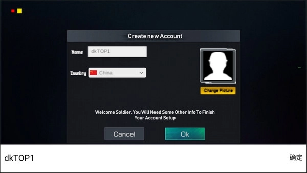 1、完成安装后启动游戏,创建专属作战代号(仅限英文字符与数字组合),确认后进入主界面;