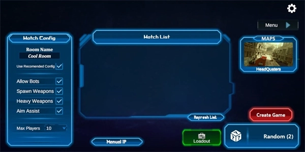 4、点击“CreateGame”生成对局,随即空降至动态生成的交火区域,开启高强度对抗;