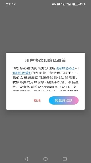 1、安装进入,查看用户协议和隐私政策,点击同意。