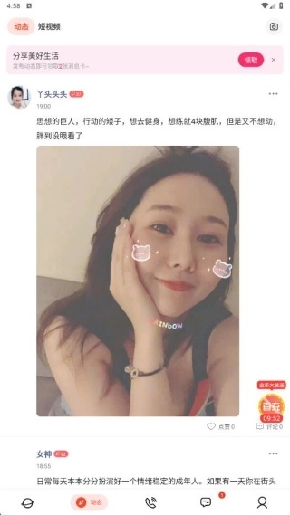 2、动态分享:不管是小众兴趣还是大众爱好,用户都能在动态里找到契合自己的圈子,从而吸引志同道合的朋友。