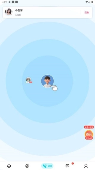 5、进入通话界面后,可查找周边的有缘人,一键开启便捷的语音对话功能。