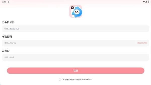4、尚未拥有账号的用户,可在登录区域点击注册按钮,进入注册界面后,依次填写手机号、验证码和密码,即可完成注册流程。