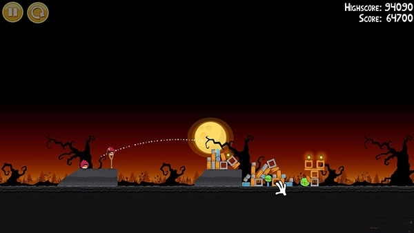 在关卡里,猪是玩家要面对的敌人,玩家得操控小鸟把这些猪都打败才行。就像下面这样: