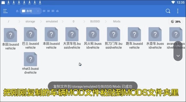 2、完成操作后,打开手机的文件管理应用,进入Android目录找到dats文件夹。若文件来自QQ群,可依次点击tencent、QQfile,长按对应的mod文件,将其移动至BUSSID文件夹内。