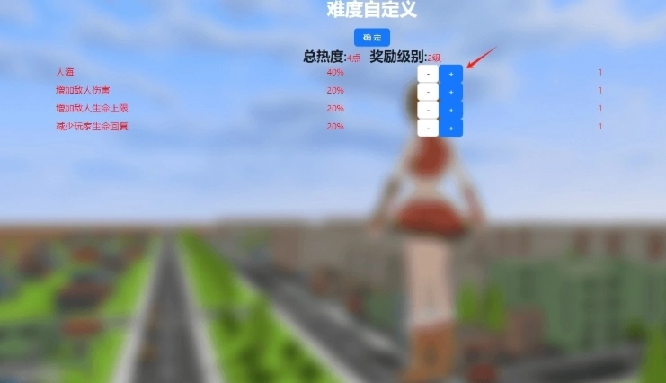 2、自由调整游戏难度,点击“+”号按钮,选择合适的挑战等级。