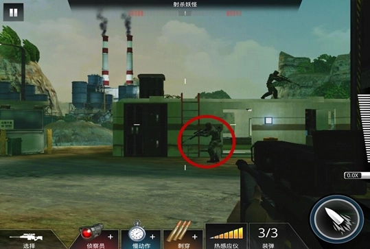 1. 锁定目标敌人:在射击训练关卡里,对准场景中由红圈标注的敌方士兵目标。